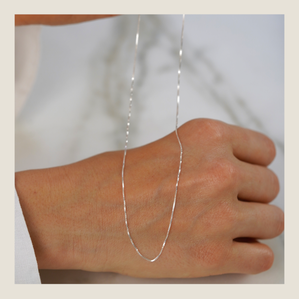 Cadena con dibujo trenzado muy delicado. Ideal si buscás un detalle un poco más trabajado sin perder minimalismo.